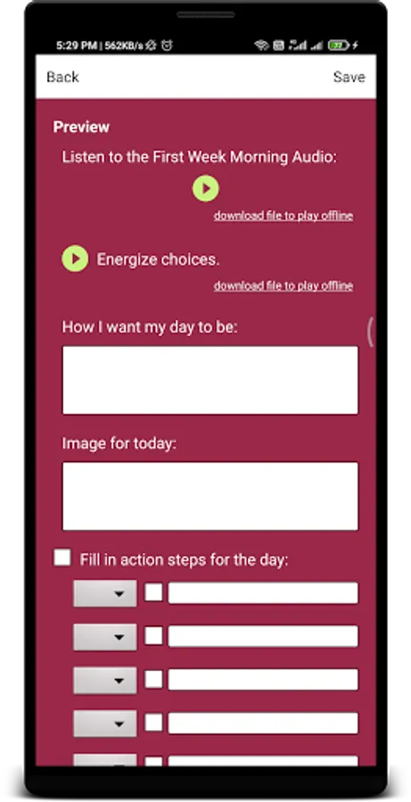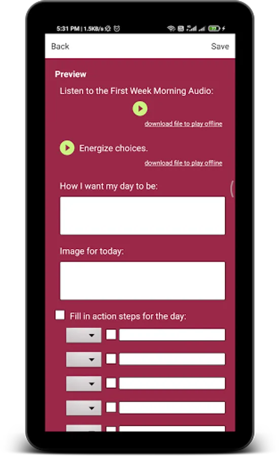 This app is a day planner with daily morning and evening meditations that accompanies the LIVING FROM VISION-course.