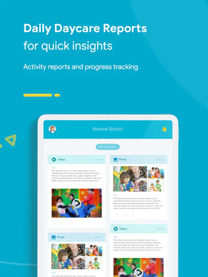 The daily plans and activities can be sent to the parents at the touch of a button. It allows the