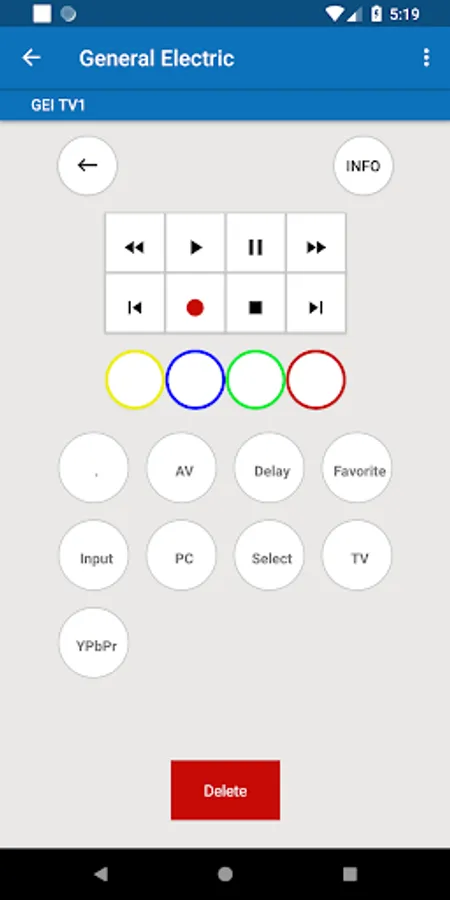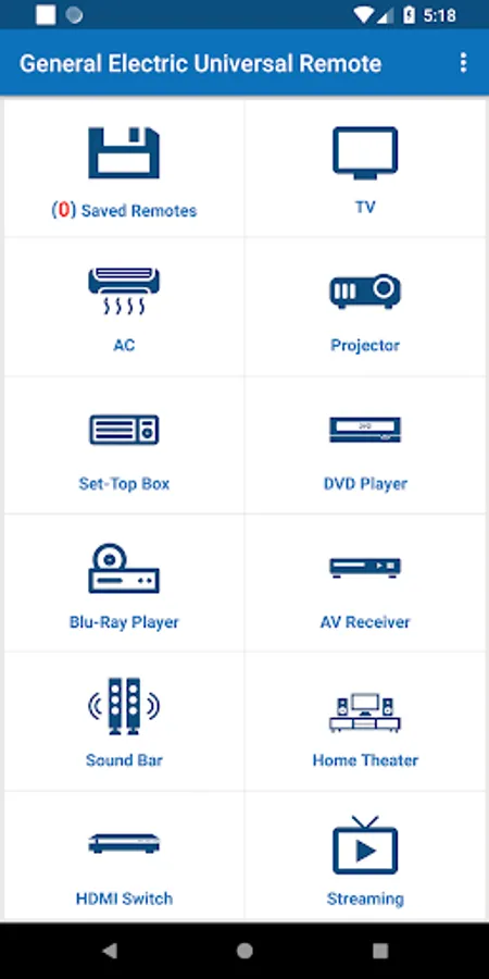 Once you have Configured this General Electric Universal Remote app with your General Electric Device it can easily be found in the "Saved Devices".