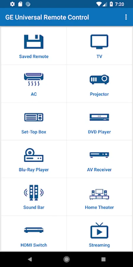 Once you have Configured this GE Universal Remote app with your GE Device it can easily be found in the "Saved Devices".