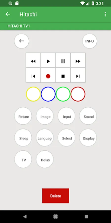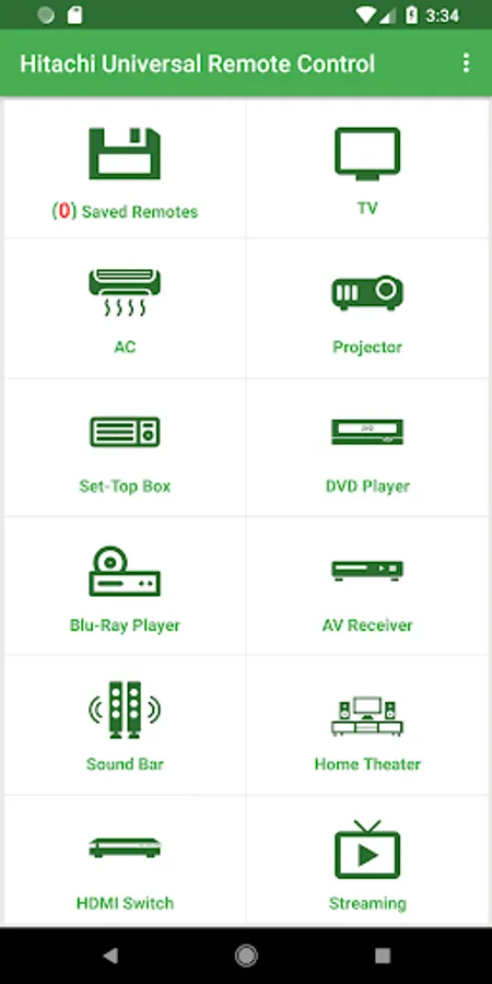 Once you have Configured this Hitachi Universal Remote app with your Hitachi Device it can easily be found in the "Saved Devices".