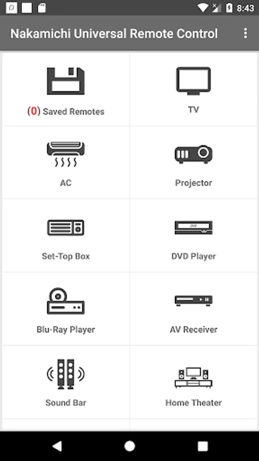 Once you have Configured this Nakamichi Universal Remote app with your Nakamichi Device it can easily be found in the "Saved Devices".