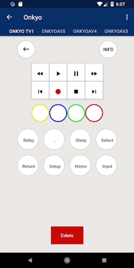 Once you have Configured this Onkyo Universal Remote app with your Onkyo Device it can easily be found in the "Saved Devices".