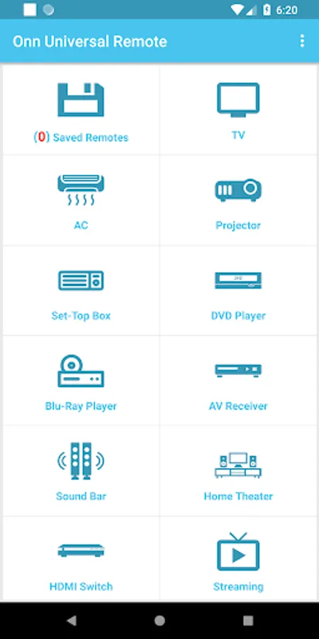 Once you have Configured this Onn Universal Remote app with your Onn Device it can easily be found in the "Saved Devices".
