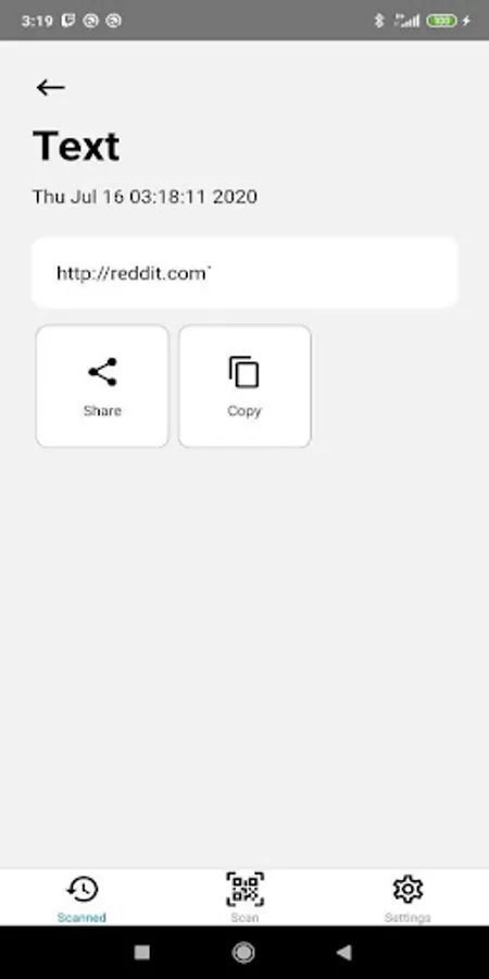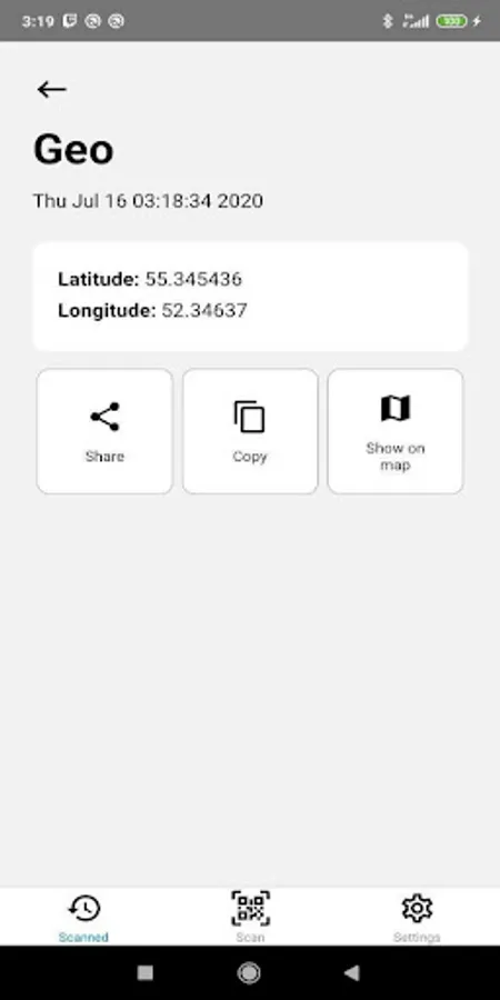 QuickScan supports widely used QR code forms such as URL, VCard, Location, Wifi, and Text. Scanning some of those formats will allow you to interact with the QR code in different ways. By default, you're able to copy or share the information you got from the code.