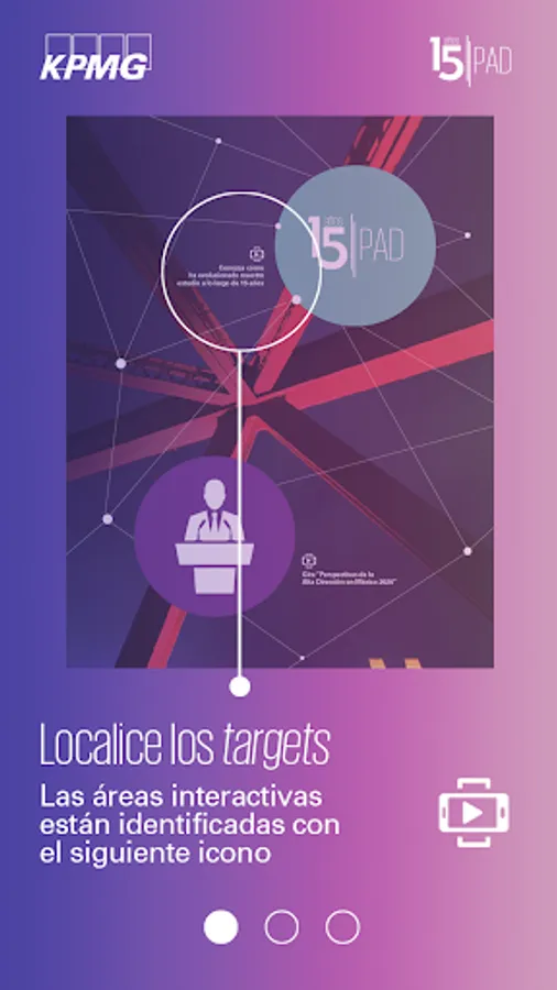 The KMPG PAD application offers complementary content, actually augmented, to our printed Study: “Top Management Perspectives in Mexico”. Scanning the targets within the study will lead to additional information that is presented in an innovative way and
