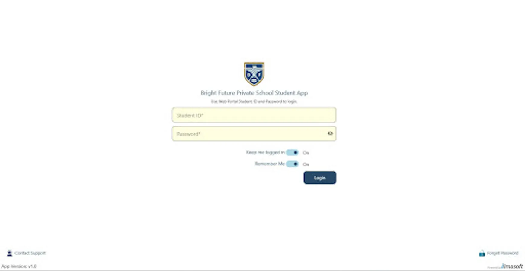 The student application is a part of the complete Bright Future Private School communicator system where students can log in with the given credentials and do the following.