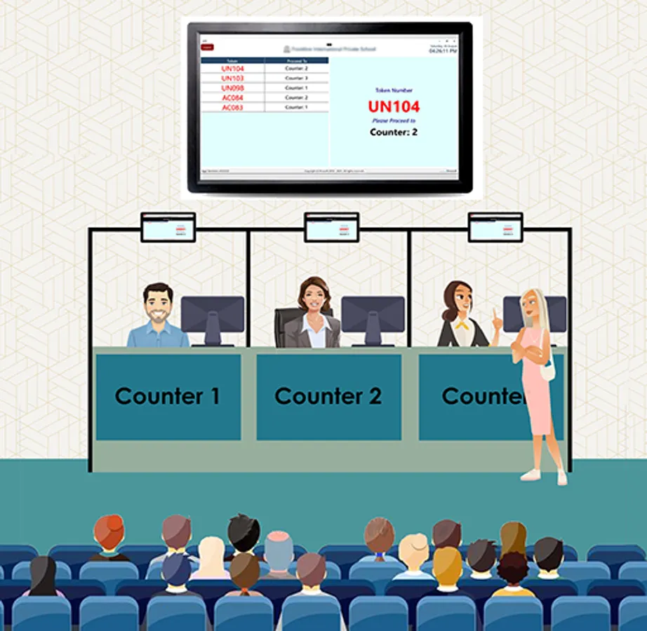 3- Counter display to show the token number for that counter