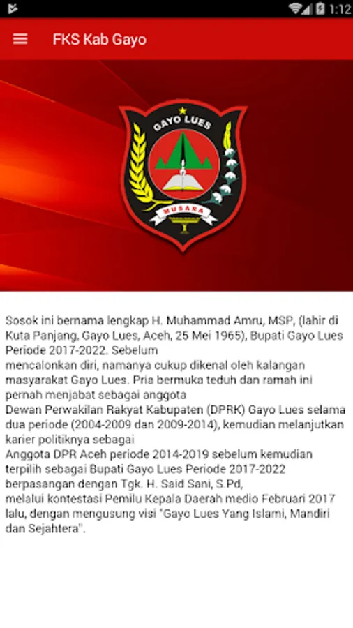 H. Muhammad Amru, MSP, (born in Kuta Panjang, Gayo Lues, Aceh, May 25, 1965), Regent of Gayo Lues Period 2017-2022. Before