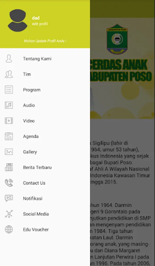 Poso Smart Kids application as a medium of communication and access to free educational content.