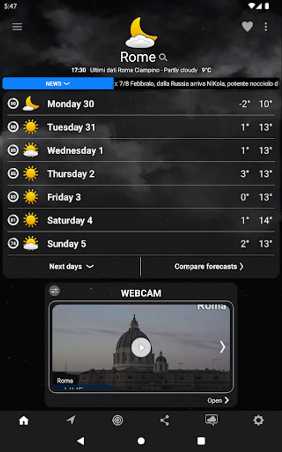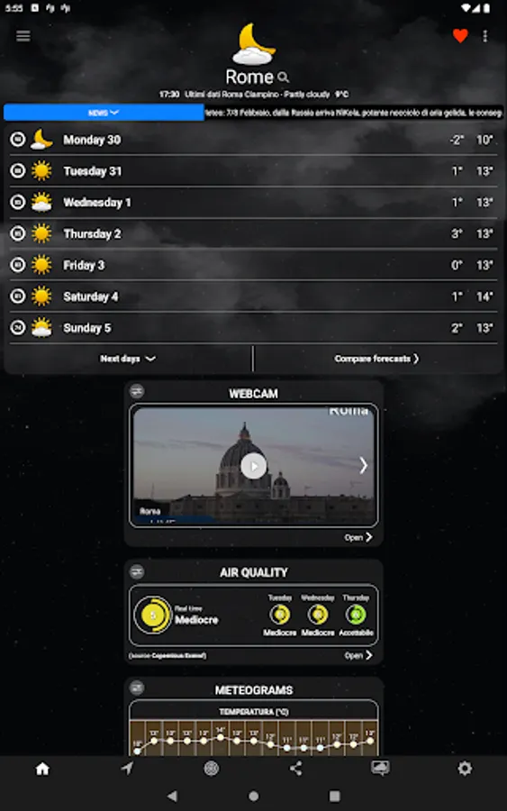 Maximum reliability and accuracy thanks to the new "Compare Forecasts" feature with which you can compare iLMeteo forecasts with the main world models.