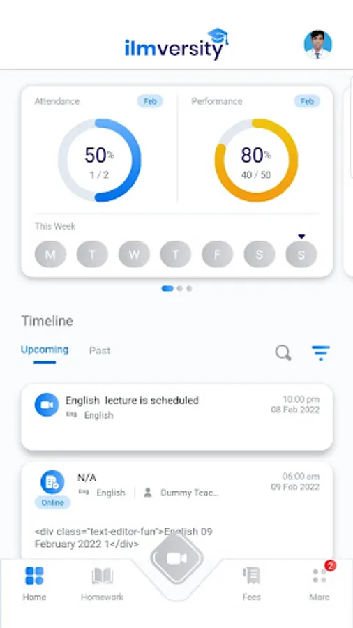 Ilmversity Demo is an application to connect parents, teachers and school. It provides all school related updates through mobile application.