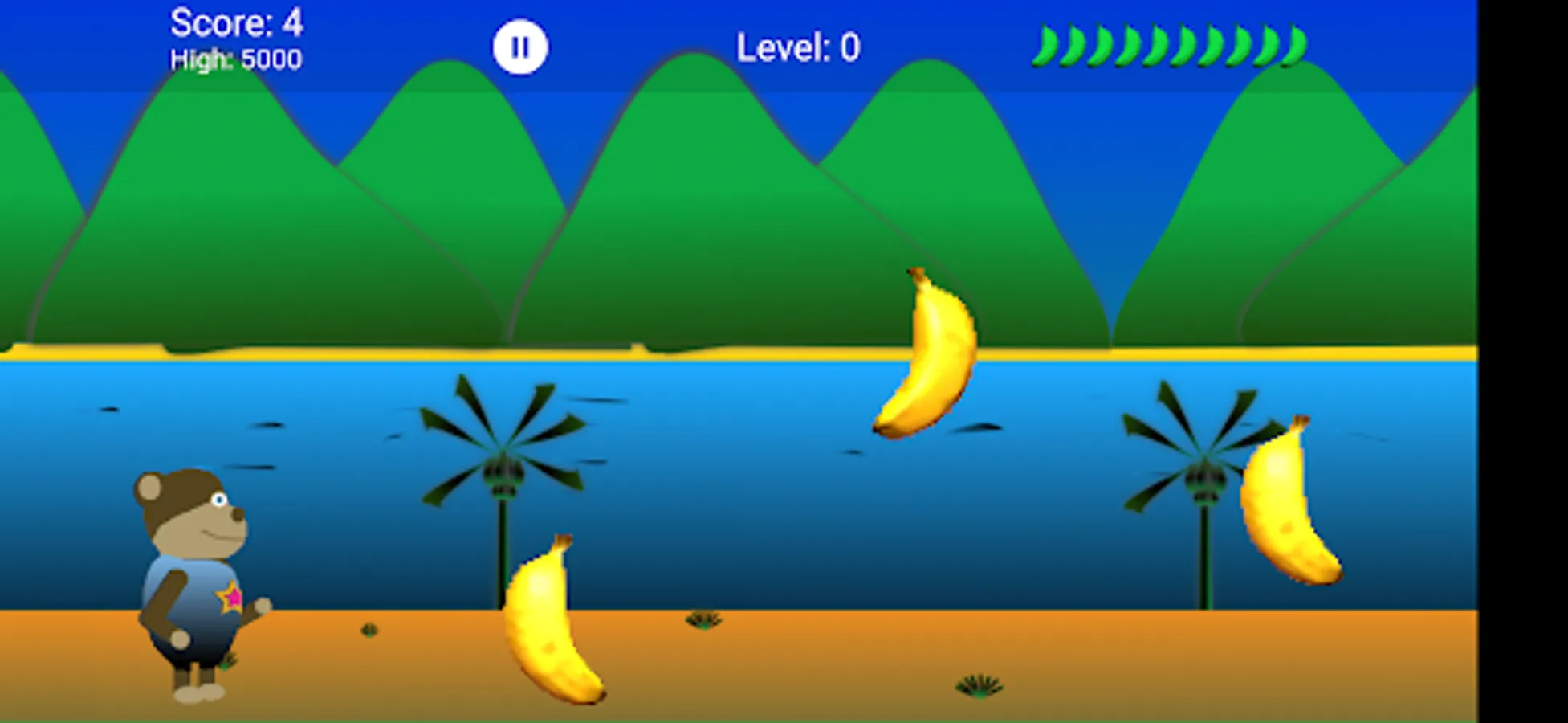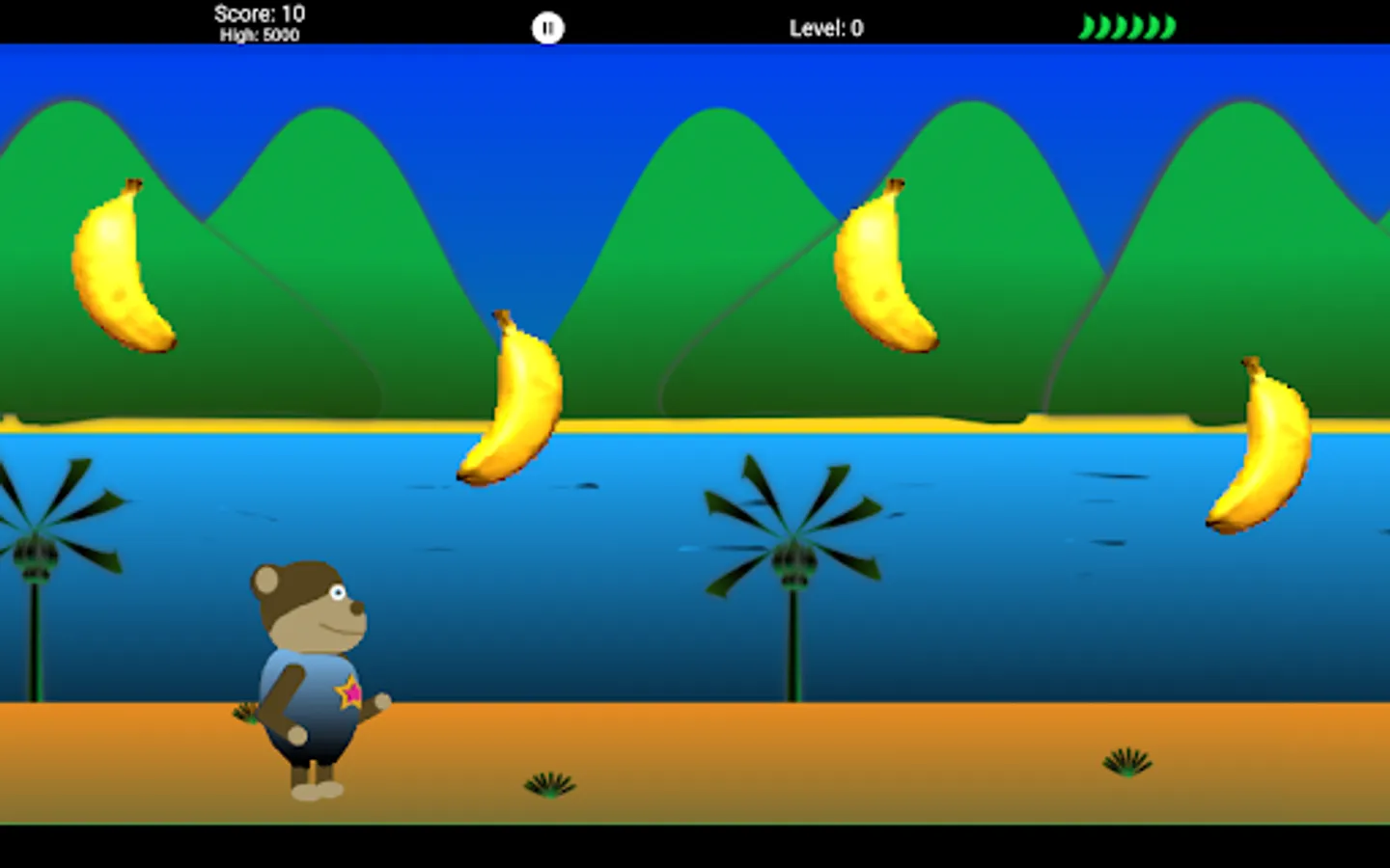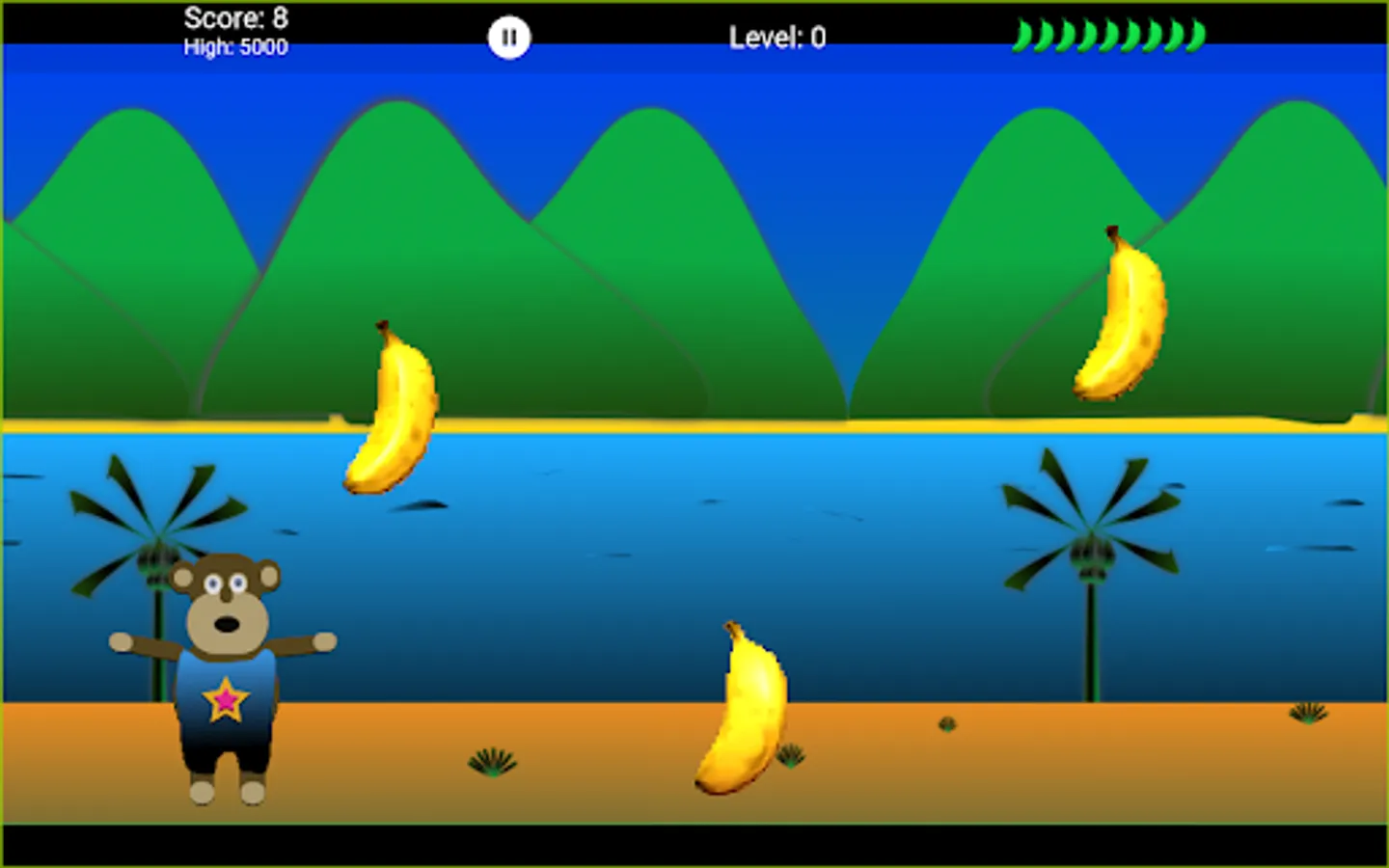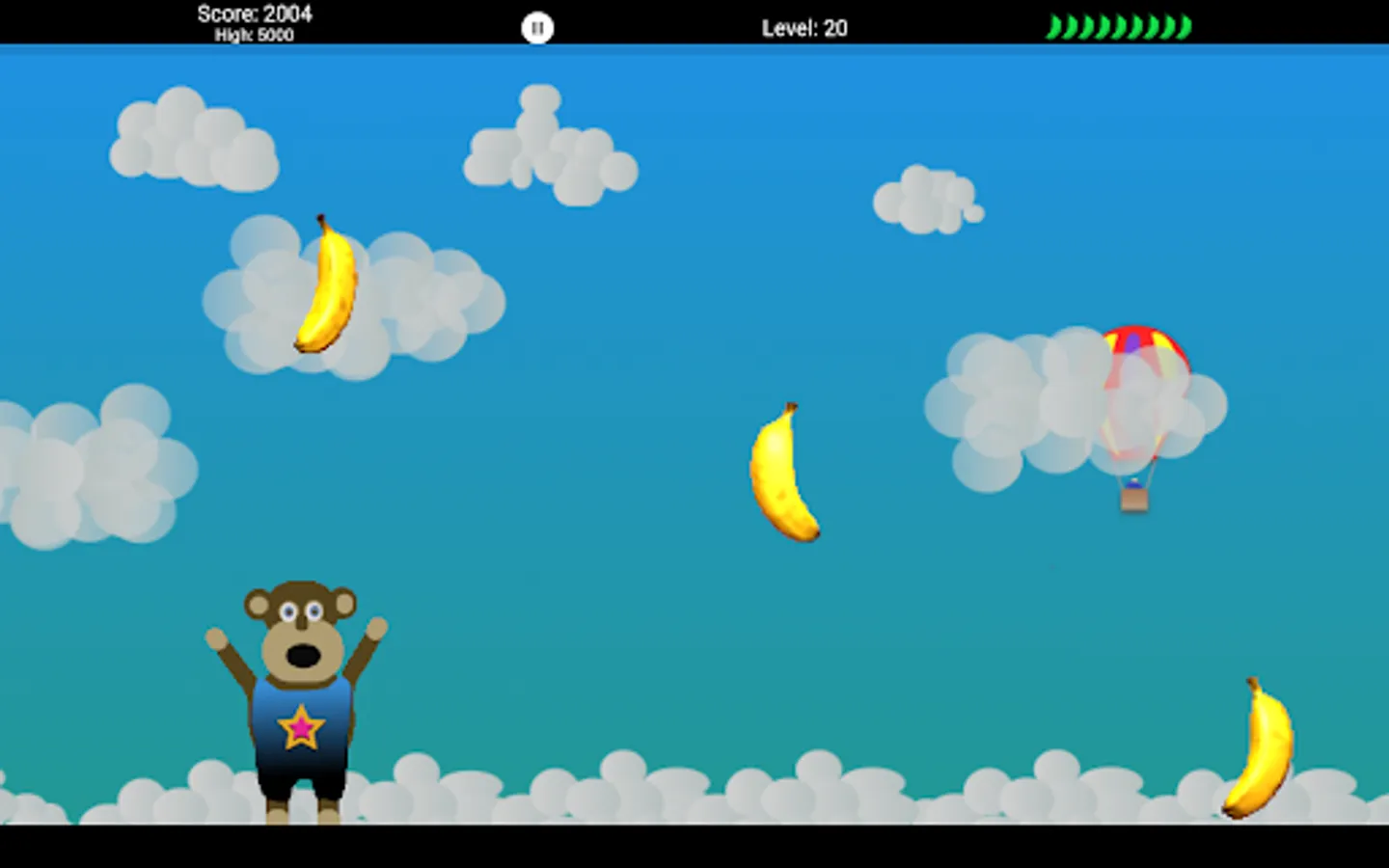 Bonobo is hungry and loves bananas. Help Bonobo catch as many bananas as possible falling off the banana truck. Be careful and do not miss to many bananas or your game will be over. Worry not young Bonobo, there are many artifacts along the way to help you in your adventure. Bonobos adventure goes through 50 levels and 10 different worlds.