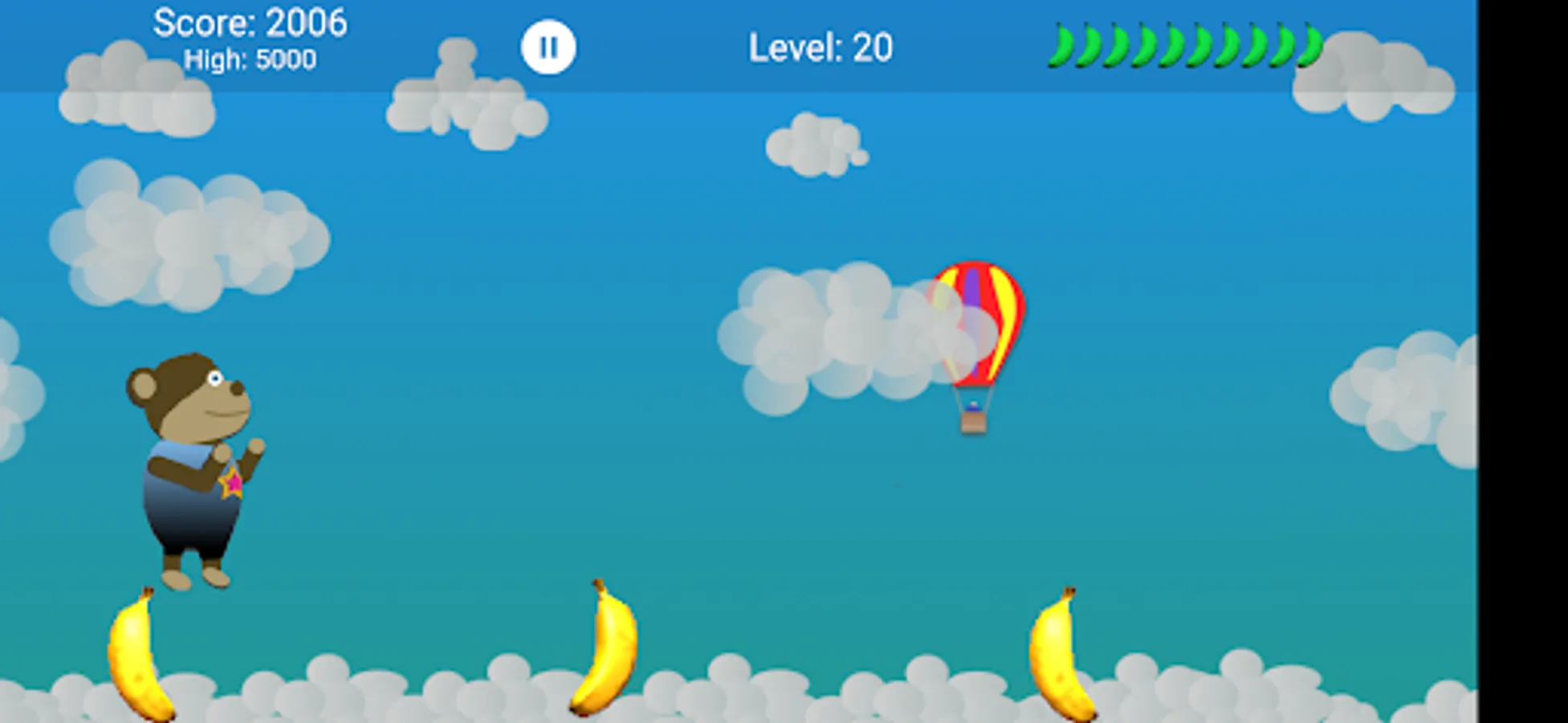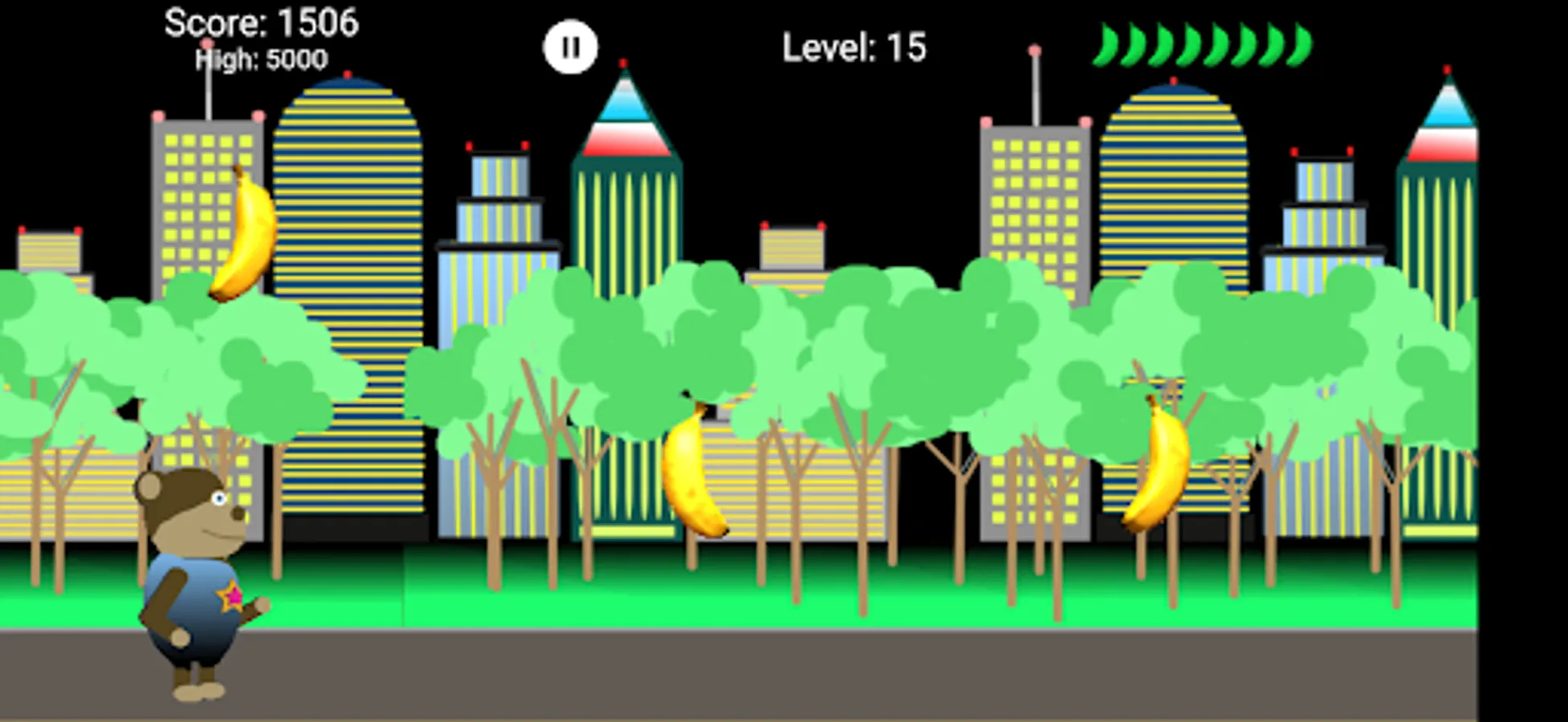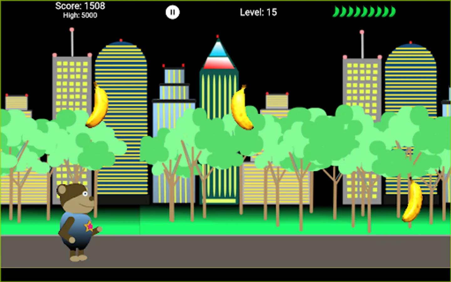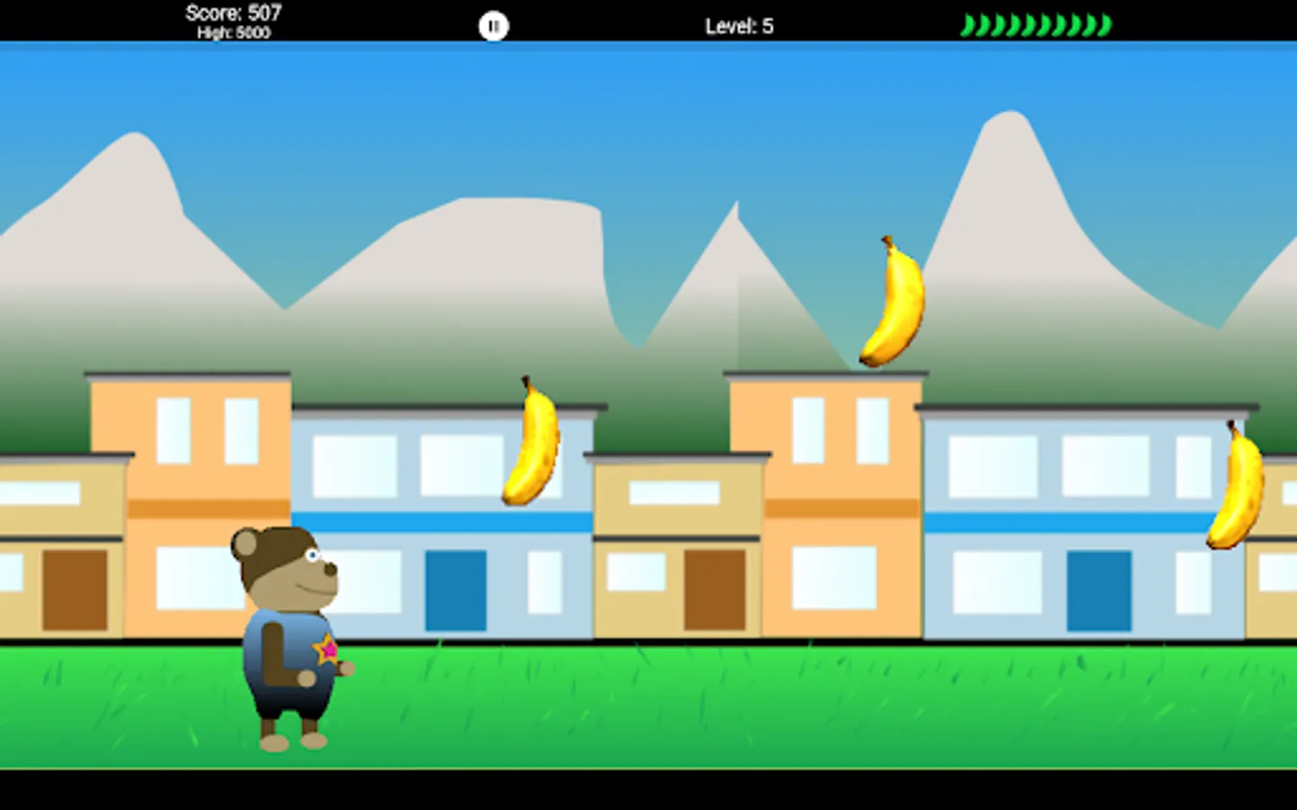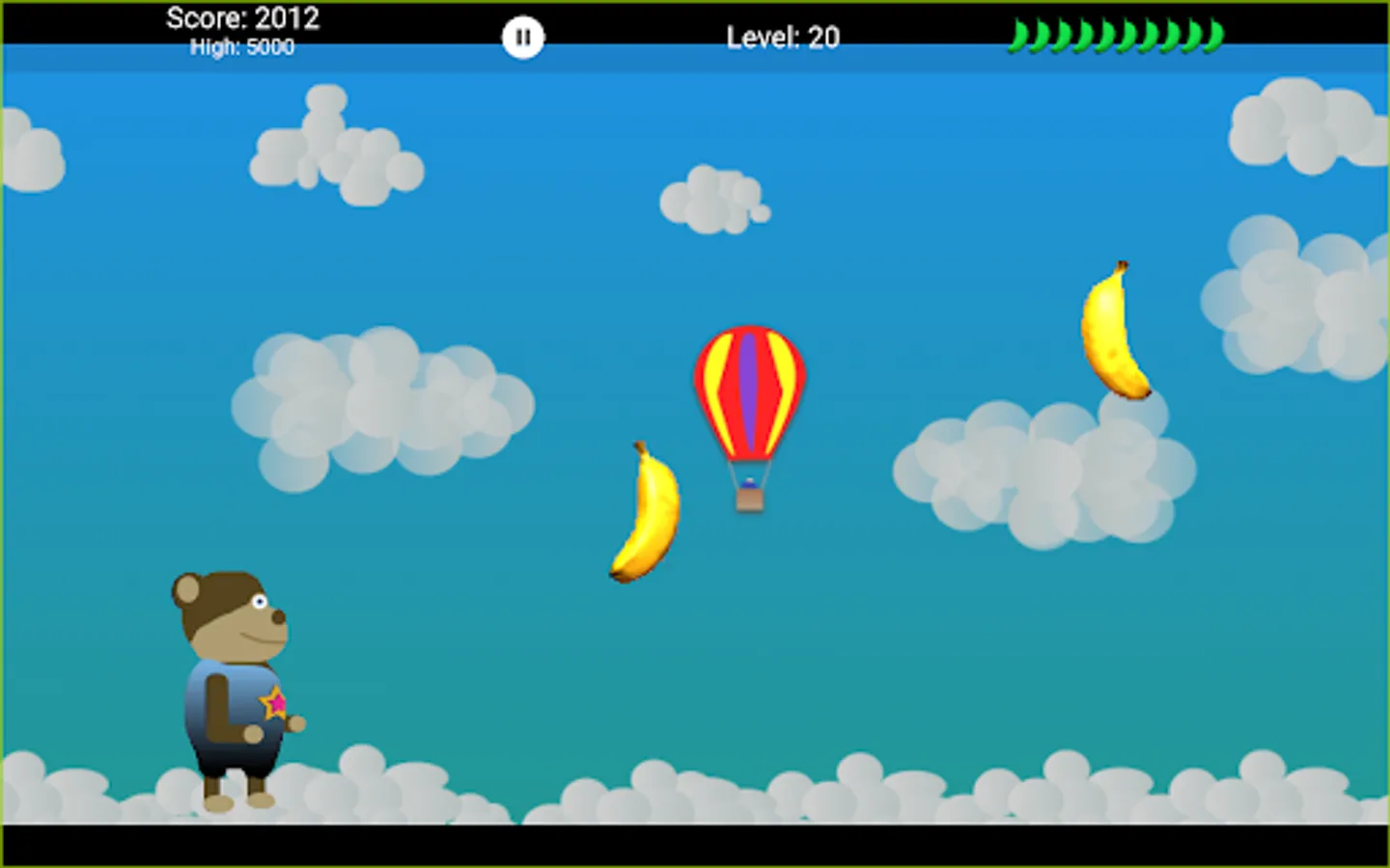 Bonobo is hungry and loves bananas. Help Bonobo catch as many bananas as possible falling off the banana truck. Be careful and do not miss to many bananas or your game will be over. Worry not young Bonobo, there are many artifacts along the way to help you in your adventure. Bonobos adventure goes through 50 levels and 10 different worlds.