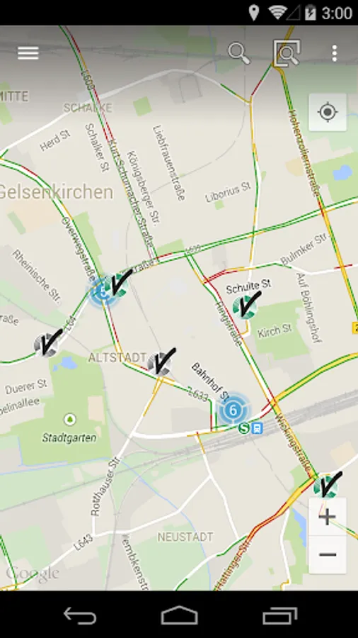 With the help of color-coded indicators on the card, you get a quick and easy overview of the current parking situation in Gelsenkirchen-center and Gelsenkirchen-Buer. To see which car park near the main railway station, the Veltins-Arena and the city center is still free and come thanks to the integrated route planner quickly and easily to your destination.