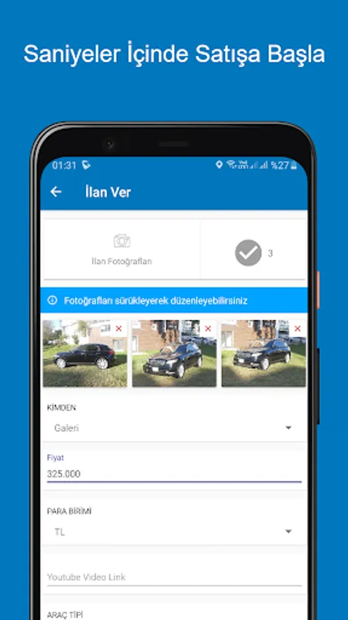 Create your free membership in just a few seconds and then create the advertisement of your car for sale as you wish and upload pictures. Then, the buyers can contact you with your phone number or by sending a message through the application.