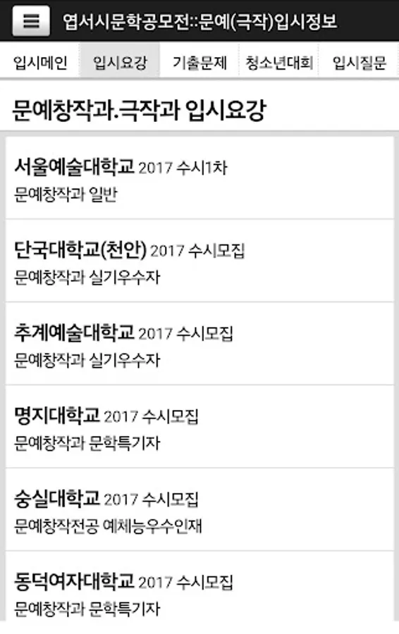 문학관련 입시정보, 문예창작과 정보, 기출문제 제공