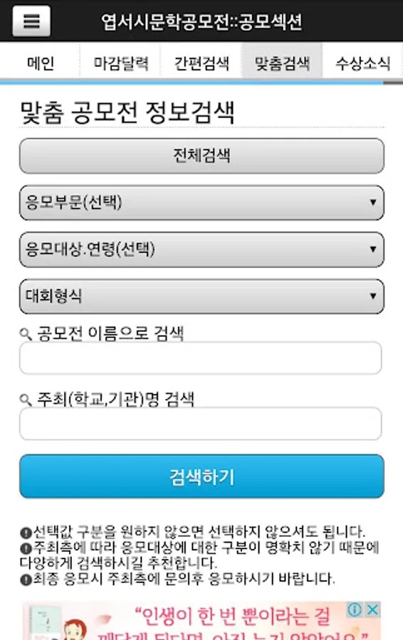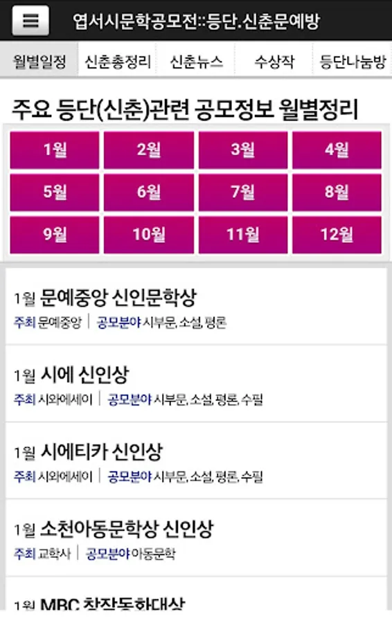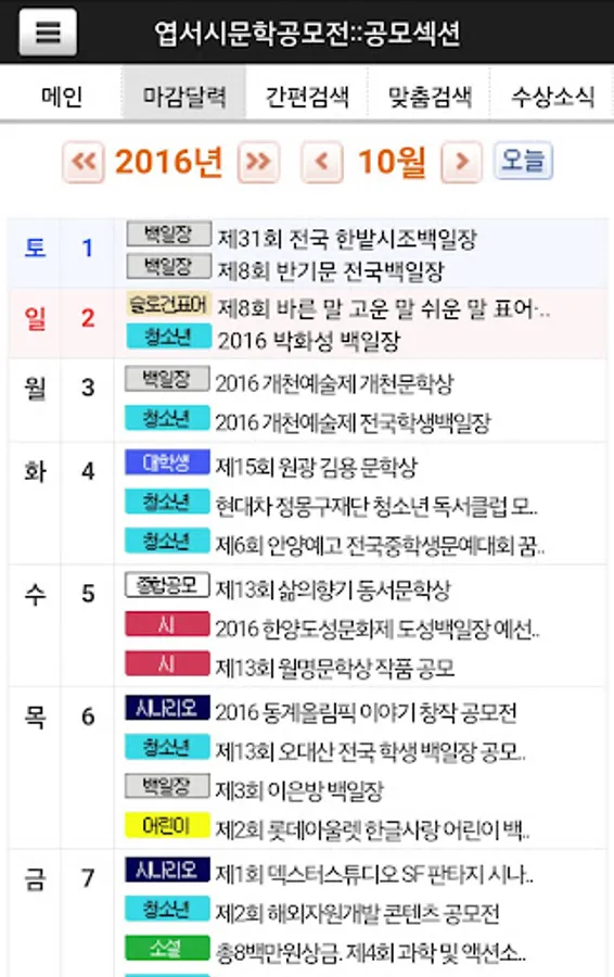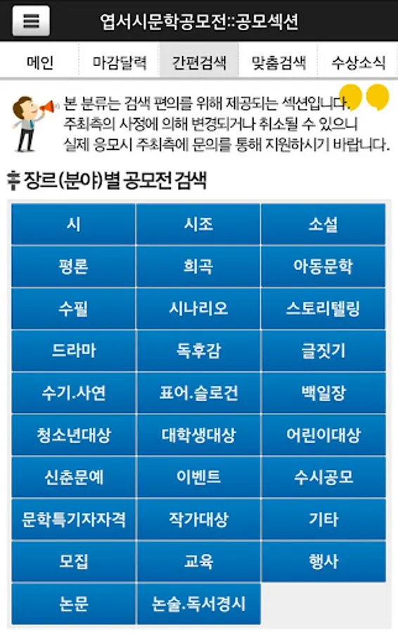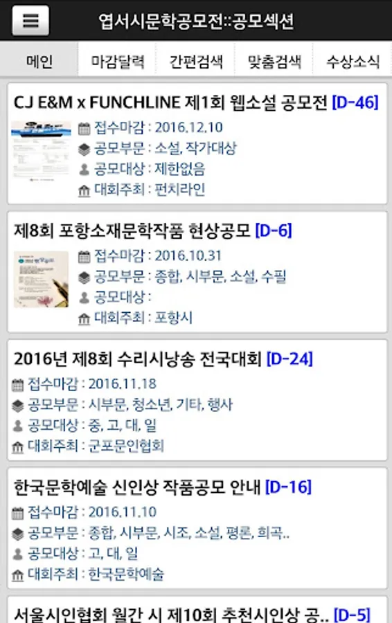 - 중요한 문예대회, 공모전 속보나 대회정보의 신속한 푸시서비스를 제공합니다.