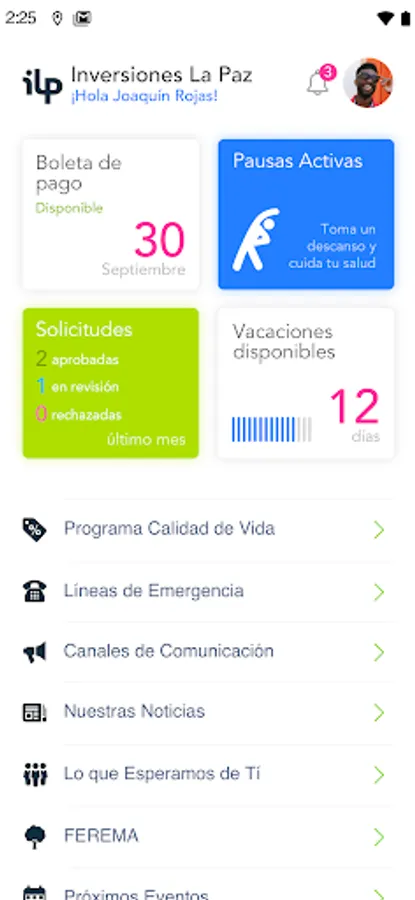 The Application "App ILP" contains valuable information at the fingertips for the collaborators of Grupo Inversiones La Paz. It contains sections like: