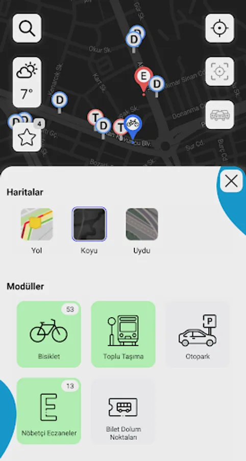 With the KBB Traffic application, you can access instant traffic density information. You can access the information of the working and closed roads. In addition, you can instantly access the occupancy status of the parking lots, the number of bicycles at the bicycle points or the pharmacy on duty information about our city.