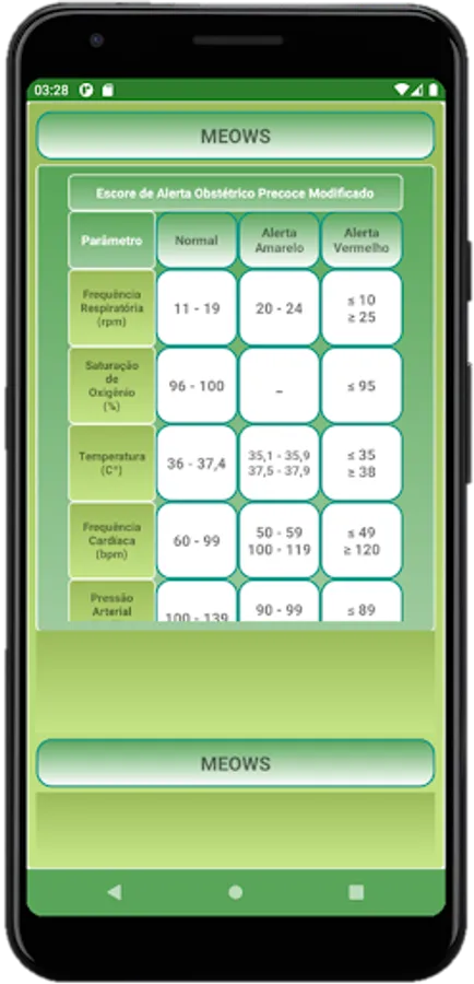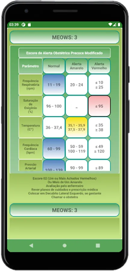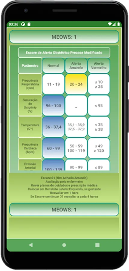 The Modified Early Obstetric Alert Score (MEWOS) is an alert scale which aims to identify early signs of clinical deterioration in pregnant women. It is based on a system of attributing points (scores) to vital parameters, that is, the further away from the normal parameters, the higher your score.
