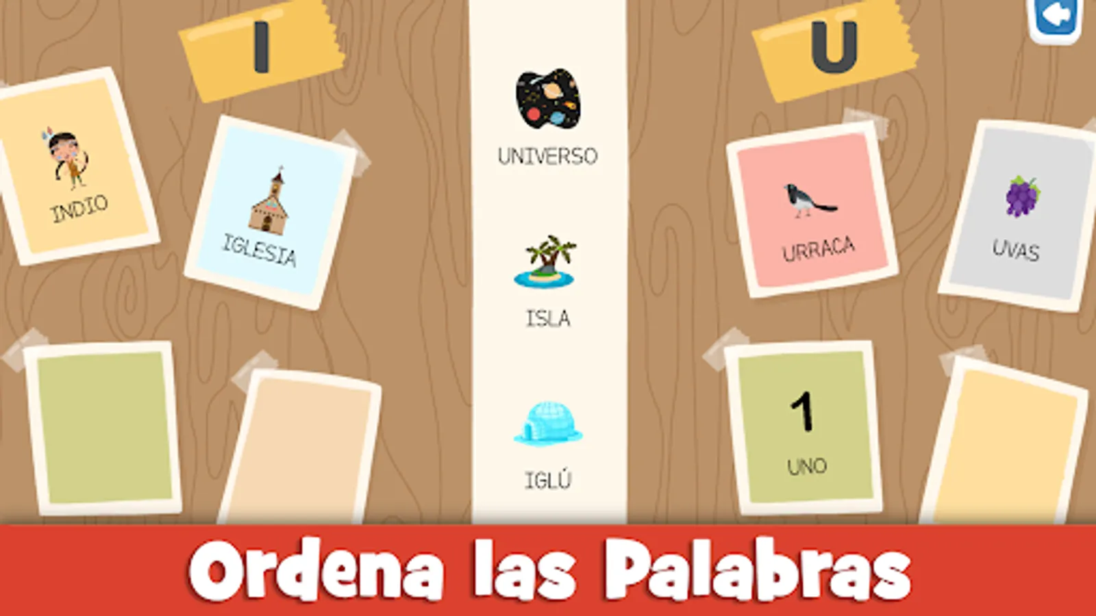- Sort by the vowel that begins: two vowels are shown and you have to order the words according to the vowel with which it begins