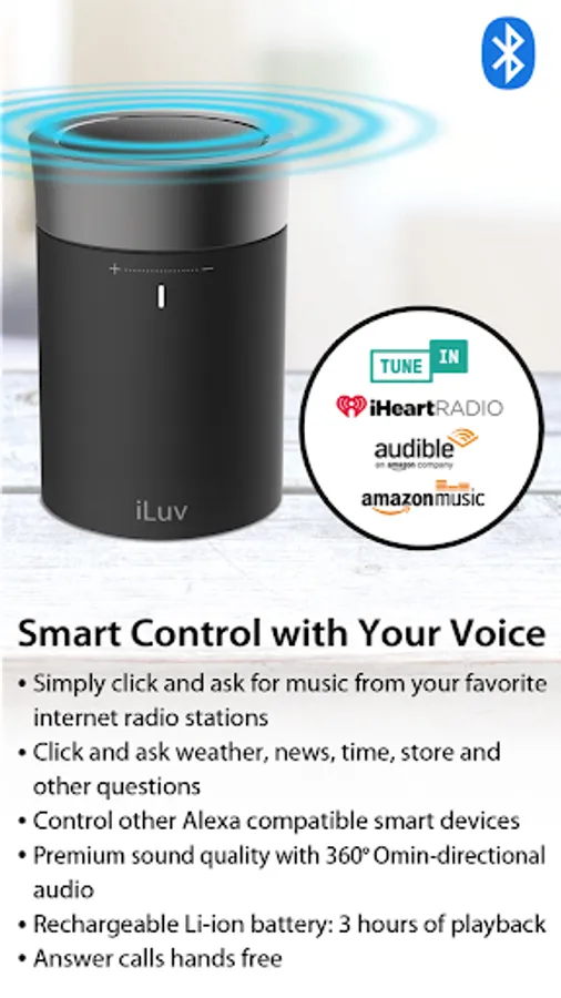 Easy-to-use Aud Click 2 app guides you to set up iLuv Aud Click 2, a Portable Bluetooth Speaker with Amazon Alexa.