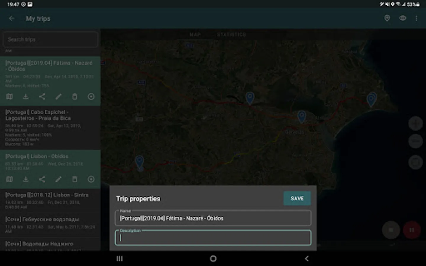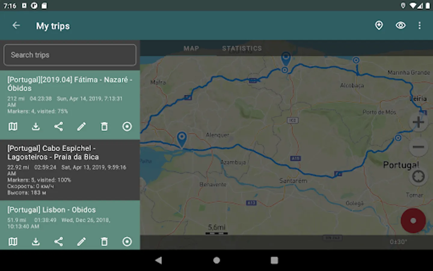 Record gps tracks of your trips, analyze statistics and share them with your friends!