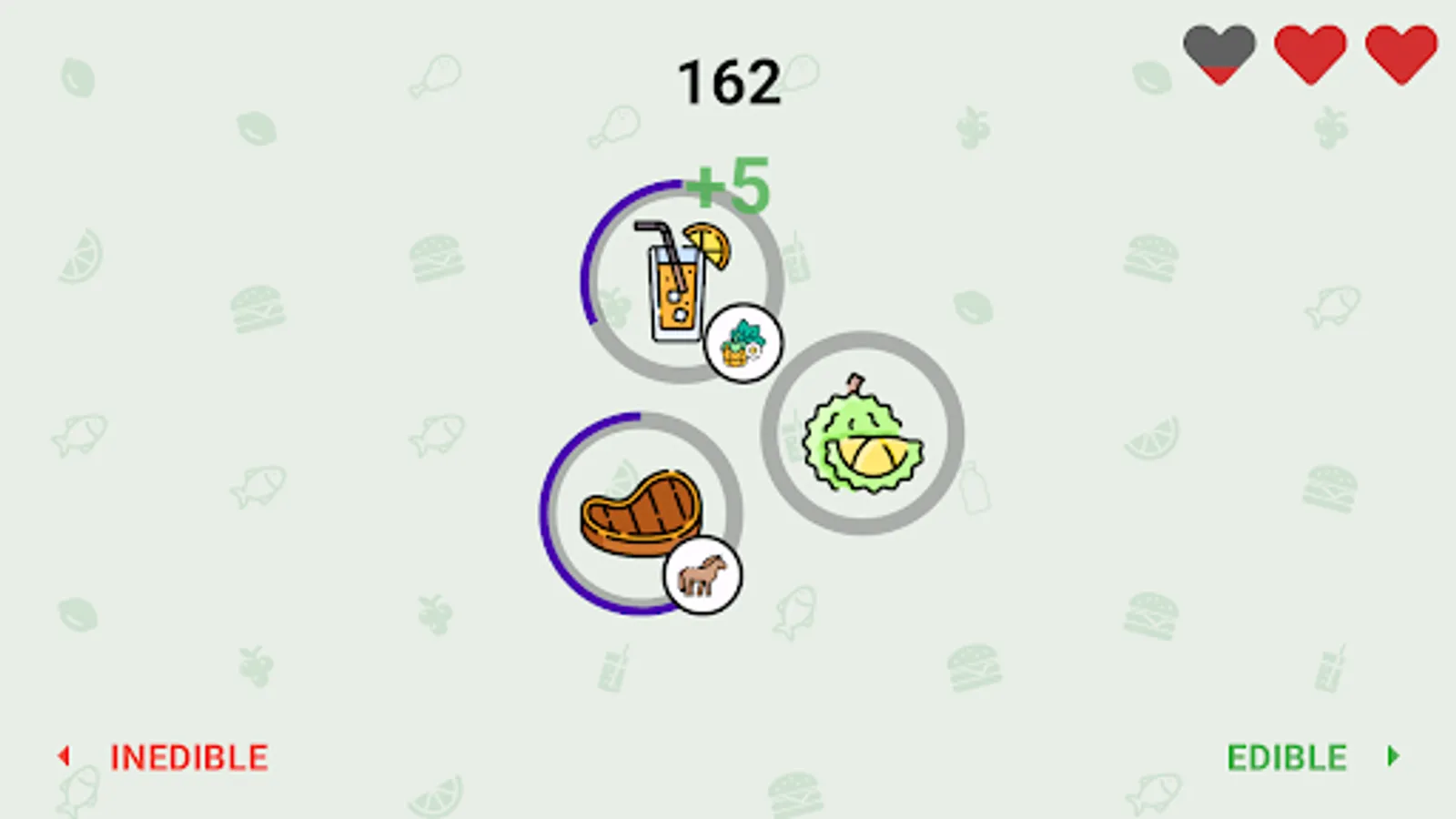 Foody: Edible & Inedible is a reaction game. Various items will appear on the screen, and you have to decide whether they are edible or not. Swap treats to the right, everything else to the left.