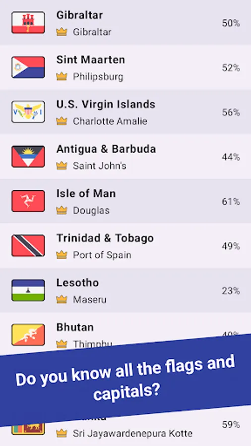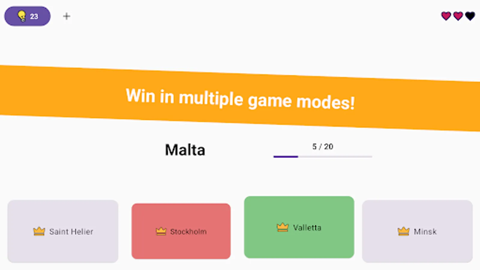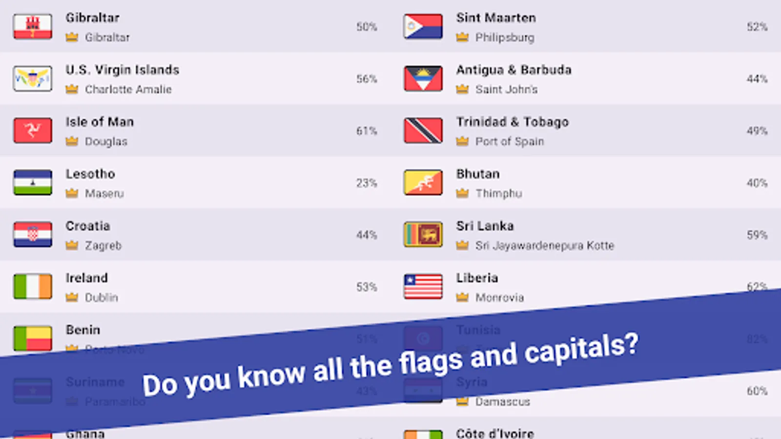 Test your knowledge of the countries of the world. Memorize flags and capitals to complete all levels and become an expert in geography.
