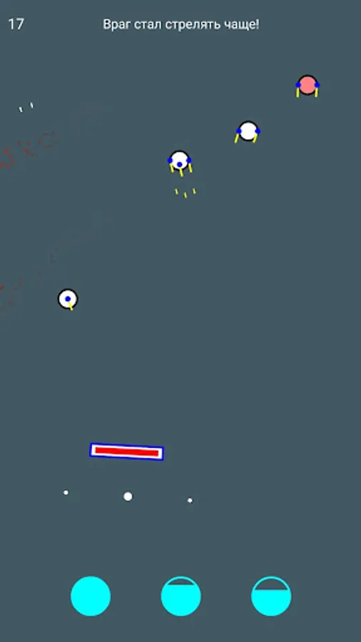Space invaders are circling over our bases. Use a concrete slab to deflect the enemy's projectiles! The death of the plate or all the bases will lead to an imminent defeat!
