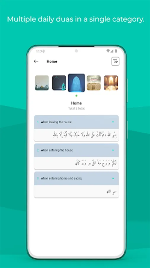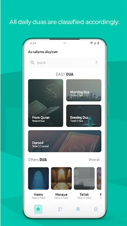 Categorized dua: All the dua are categorized according to the category, which makes it easy to access the desired ones.