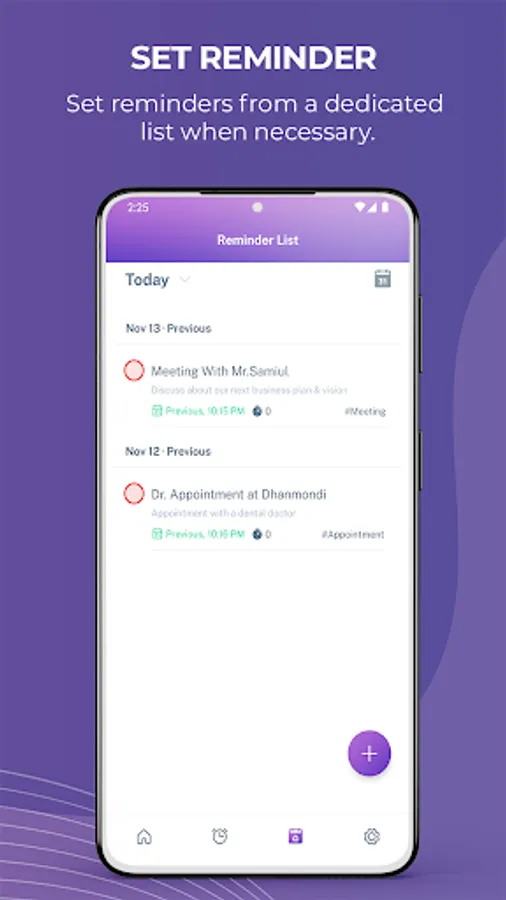 Reminder list: The app features reminder list functionality to keep all your regular schedules in check.
