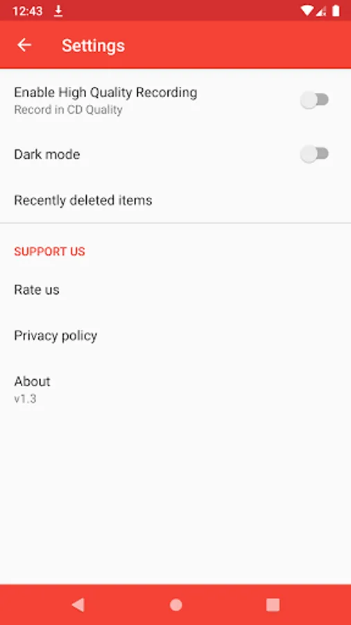 - Change recording quality from settings