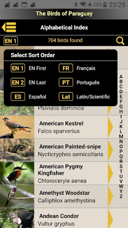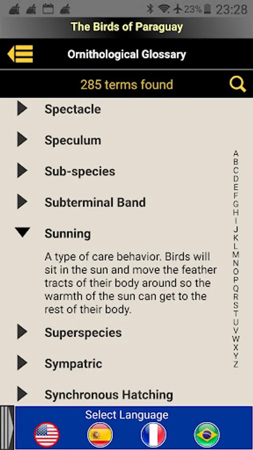 The current app version contains the descriptions and images of 704 bird species found in Paraguay. Moreover, an ornithological dictionary (English, French, Spanish, Portuguese) and detailed illustrations and drawings of bird anatomy are included.