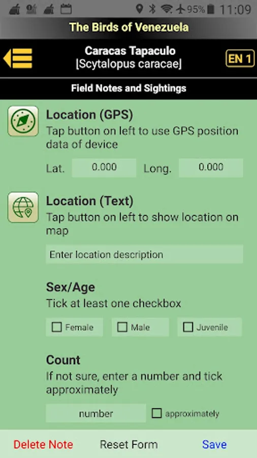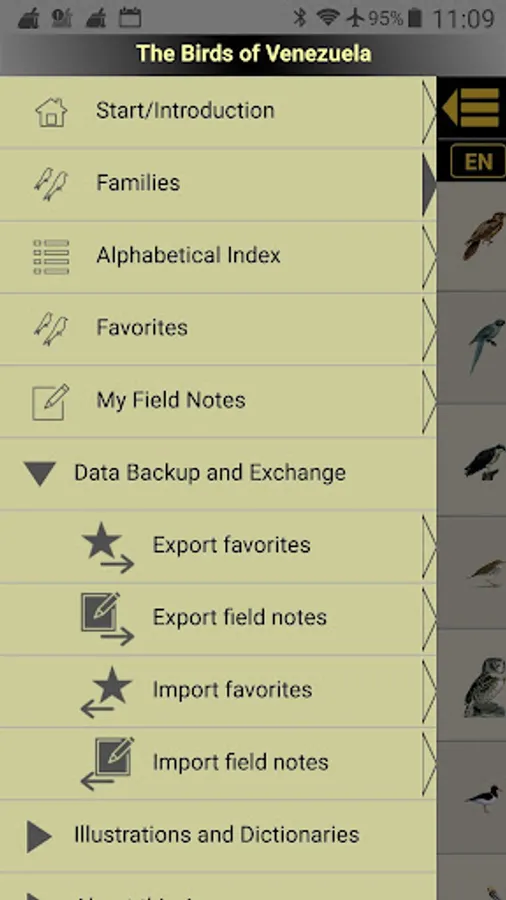 As with The Birds of South America, which contains more than 3,000 birds found on the entire continent, also The Birds of Venezuela runs on Android devices and can exchange Field Notes and Favorites lists between identical app versions on devices of other users by exchanging export files.
