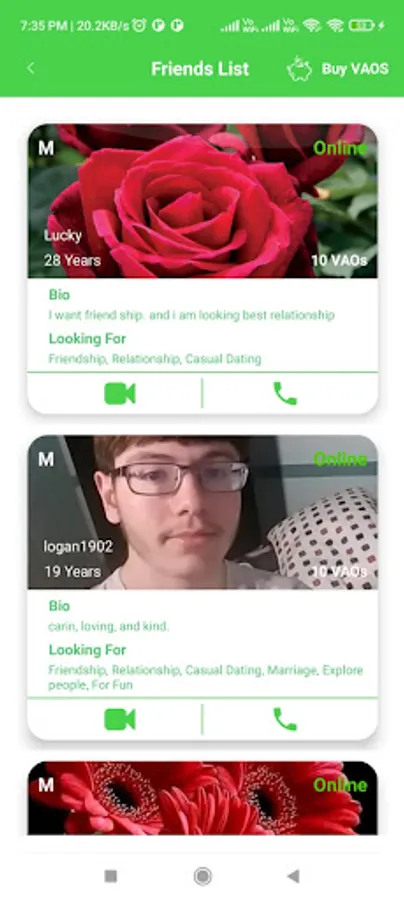 In year 2020-2021 girls & boys are definitely looking for their life partner and solution is here best free dating app 2021, VAO is best free dating app 2021 because it has video, audio calling feature with amazing settings to handle video-audio-camera quality in one click. best free dating app 2021 is really handy to use just open VAO- best free dating app 2021 and press video call or audio call option as per your flavour of taste and you will get connected with VAO best free dating app 2021 users from 100+ countries.