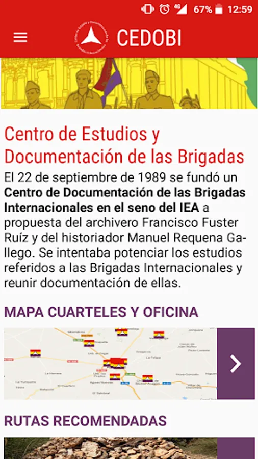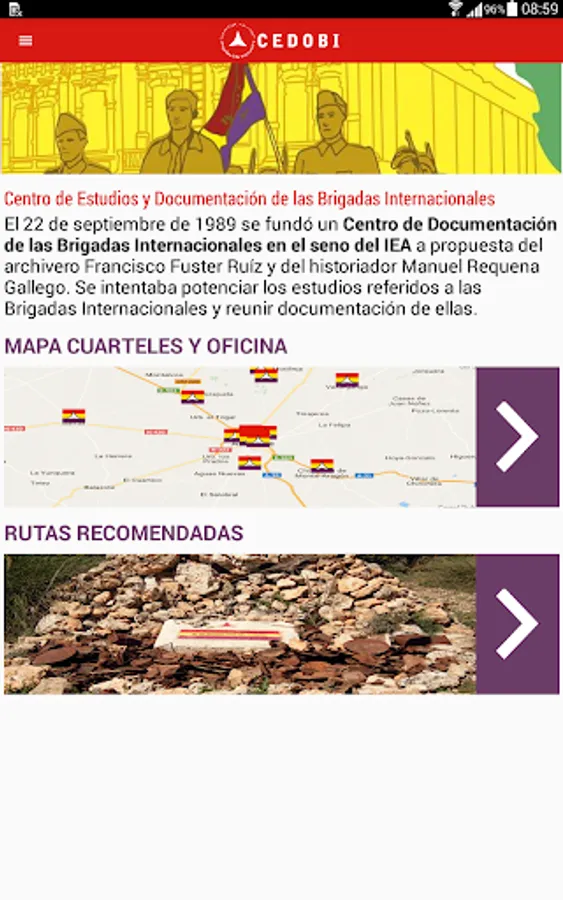 The general function pursued by the operation of the Center for Studies and Documentation of the International Brigades (CEDOBI) is encouraging the memory of brigadiers and expand scientific knowledge of the International Brigades and the last Spanish civil war.