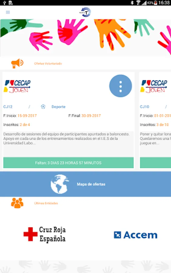 Through it, you can view all active deals by defining the characteristics of volunteer activities offered (description, objectives, number of requested volunteers, schedule, non-formal learning derived from voluntary action .. .).