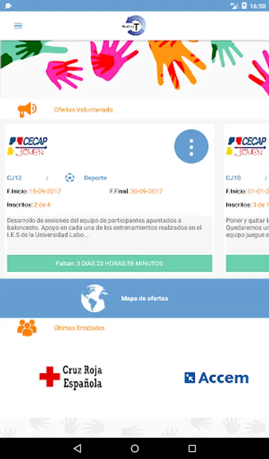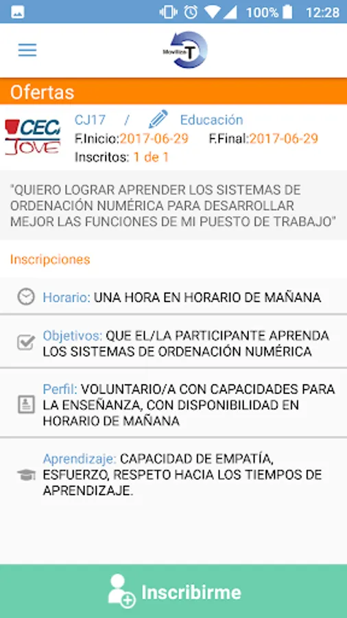 Thanks to the APP Mobilizes-T, social entities may make known their offer volunteer thereby achieving greater dissemination and demand for the shares and, in the same way, allowing the volunteer to develop the desired action reaching set non-formal learning from this activity and being accredited this acquisition through an official certificate.