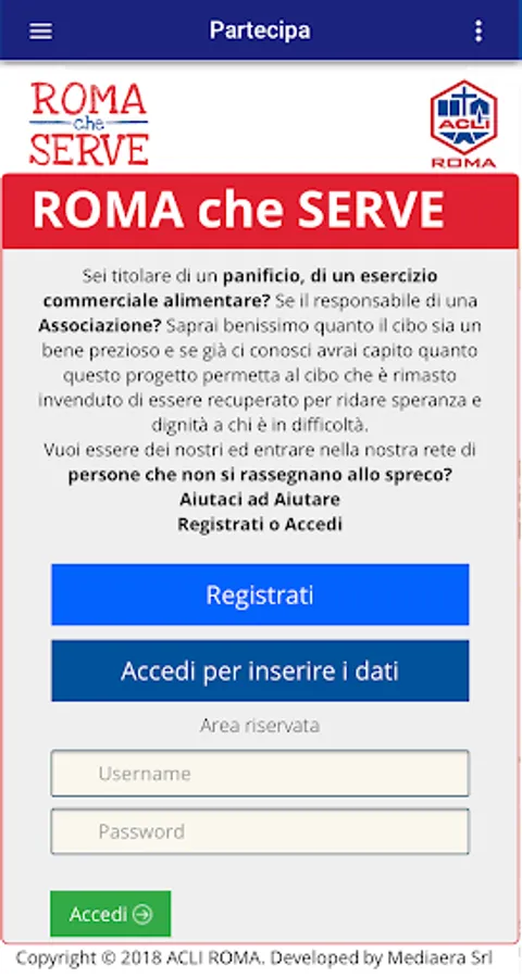 "Roma che Serve" is the application developed within the project "Food Serving", to multiply donations, increase the recovery of waste, to fight food waste and support solidarity.