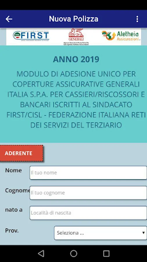 The Aletheia application allows FIRST CISL members to join the RC Cashier and RC Professional policies, to check the status of their policies and to upload the necessary documents to complete their membership.