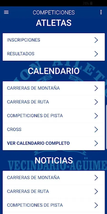 With the new official app of UNION ATLÉTICA VECINDARIO AGÜIMES you will have all the information related to events, competitions and results on your mobile. In addition, you can receive personalized notifications and register for competitions