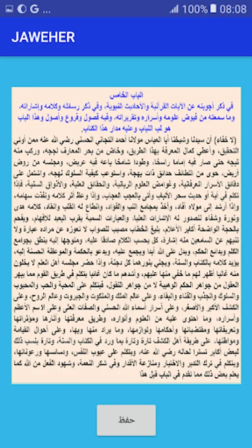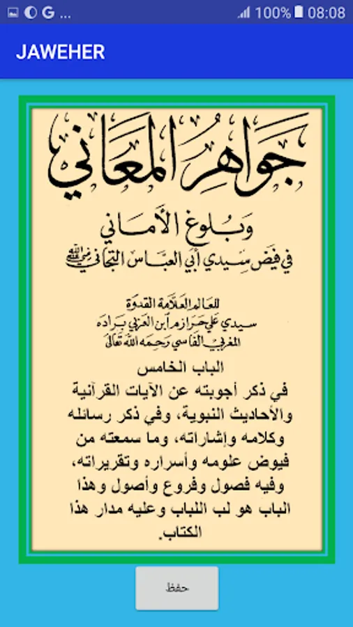 (لا خفاء) أن سيدنا وشيخنا أبا العباس مولانا أحمد التجاني الحسني رضي الله عنه ممن أوتي التحقيق, وأعطي كمال المعرفة بهذا الطريق, وخاض من بحر المعارف لججه, وركب منه ثبجه حتى صار فيه إماما راسخا, وطودا شامخا باعه فيه عريض, ومجلسه من روض أريض, حوى من اللطائف حدائق ذات بهجة, واستوعب كيفية السلوك نهجه, واشتمل على دقائق الأسرار العرفانية, وغوامض العلوم الربانية, والحقائق العلية, والأذواق السنية, فإذا تكلم في آية أو حديث سحر الألباب وأتى بالعجب العجاب, وإذا وعظ أثر كلامه ونفذت سهامه, وإذا أرشد إلى مولاه أفاد, وأخذ بمجامع اللب والفؤاد, وانطاع له القلب انقاد, كلامه هدى ونورة وشفاء للصدور له الإشارات العليا, والعبارات السمية يقرب البعيد للإفهام, ويفحم بالحجة الواضحة أكابر الأعلام, بليغ الخطاب مصيب للصواب لا تعوزه عن مراده عبارة ولا تنبهم عن السامعين منه إشارة, كل يحسب الكلام صادقا عليه, ومتوجها إليه ينطق بجوامع الكلم وبدائع الحكم, ويدل على الله أبدا ويجمع عليه, ويدعو بالحكمة والموعظة الحسنة إليه, يؤيد كلامه بالكتاب والسنة, ويجلي بنورهما كل دجنة, وإذا حضر مجلسه أهل العلم لا يخلون منه غالبا أظهر لهم ما خفي منها عليهم, وأشدهم ما كان غائبا يتكلم في طريق القوم مما يبهر العقول من جواهر الحكم الو بية لا من جواهر النقول, فيتكلم على المحبة والحب والمحبوب والسلوك والجذب والفناء والبقاء, وعلى عالم الملك والملكوت والجبروت وعالم الروح, وعلى الكشف الأكبر والأصغر, وعلى أسرار أسماء الله الحسني والصفات العلى وعلى الاسم الأعظم وأسراره, وما احتوى عليه من العلوم وأنواره, وطريق معرفتها وآثارها ومؤثراتها وتعريفاتها ومقتضياتها وأحكامها ولوازمها, وما يراد منها وبها, وعلى أحوال القيامة ومواطنها, على طريقة أهل الكشف تارة وتارة بما ورد في الكتاب والسنة, وتارة ينسب ذلك لبعض أكابر تسترا لحاله رضي الله عنه, ويتكلم على عيوب النفس, ودسائسها ورعوناتها, و يتكلم في ترك التدبر والاختيار ومنازعة الأقدار وفي شكر النعمة, وشهود الفعل من الله كما يعلم بعض ذلك مما تقدم في الباب قبل هذا.