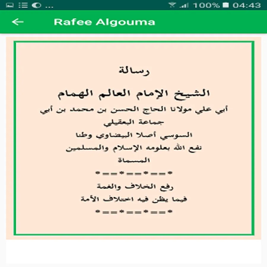 I have moved the message and put it in the application to facilitate reading for readers and to make this work purely to the face of the holy eye of God's mercy and blessings of God to our master Muhammad and his family and companions.