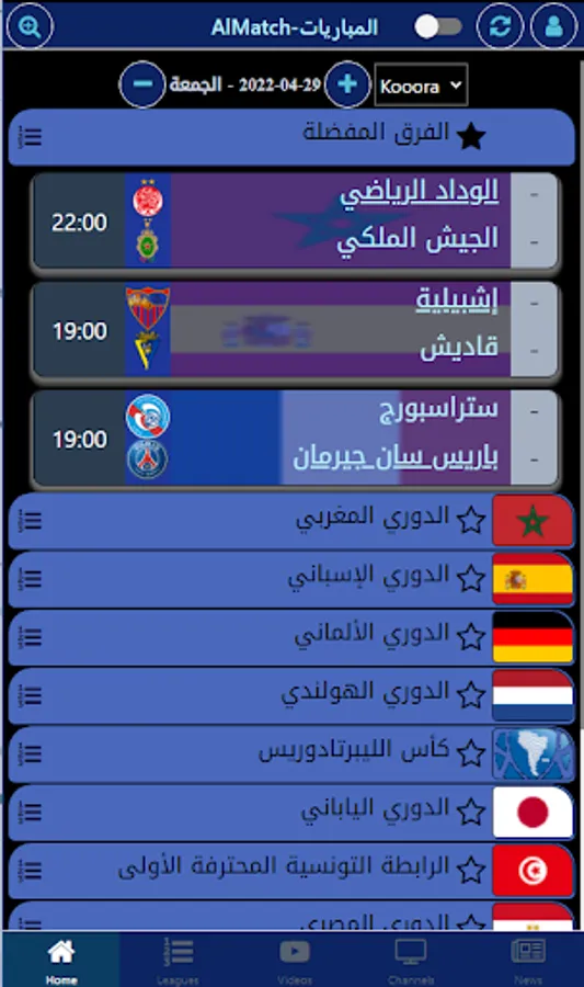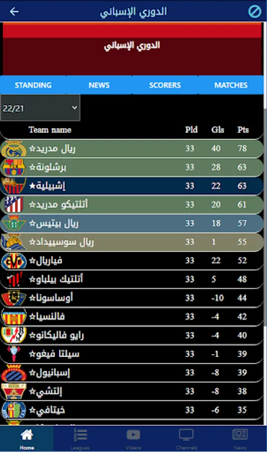 - leagues standings,