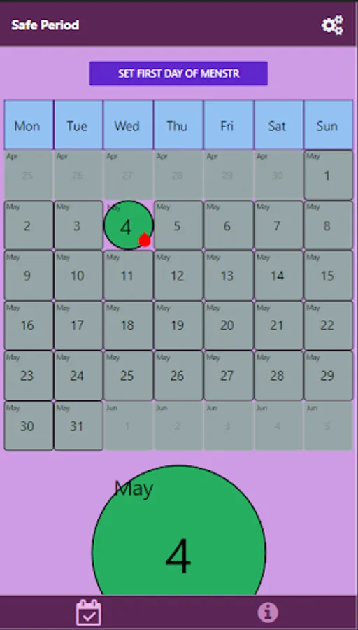 With -Safe Period Calculator- you can calculate the safe period that you can have sex in it without worrying about pregnancy, all you have to do is enter the day of the first day of your Menstrual cycle, and a calendar will shown, the green days are safe , the red are not!