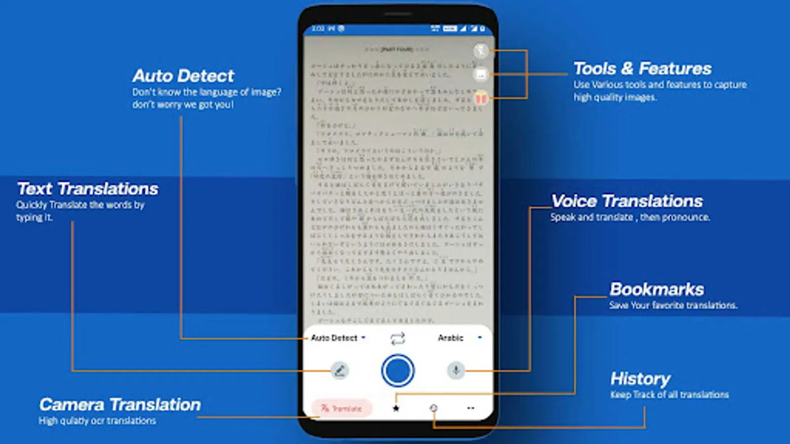 - Support Non Latin based languages like Chinese,Korean,Japanese, Arabic etc. And a fastest japanese translator camera.