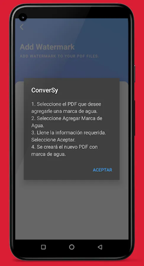 Do you need to add watermark or stamp to PDF? ConverSy does it for you, use our “Watermark” option and make sure your files have your signature.