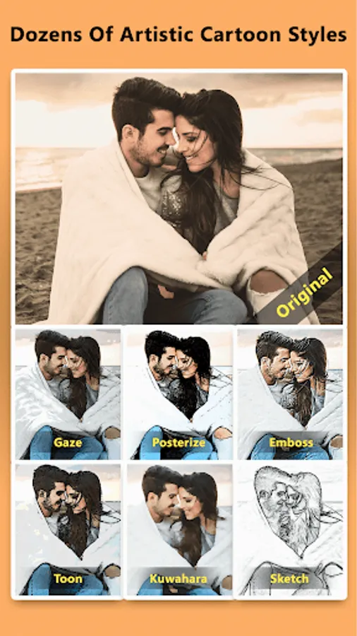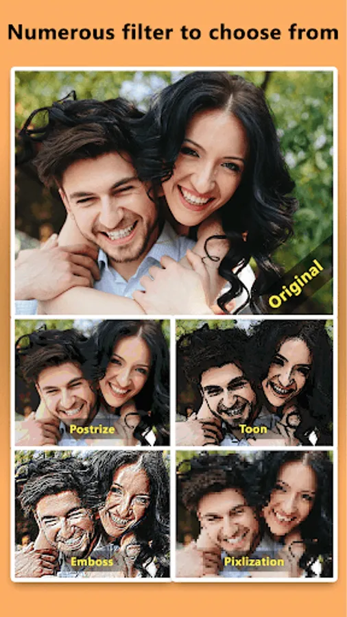 3. More than 20 effects: Cartoon effects, Emboss, Jazzy, Poster, Smooth Toon, Gaze, Pixilation, Swirl and many more.